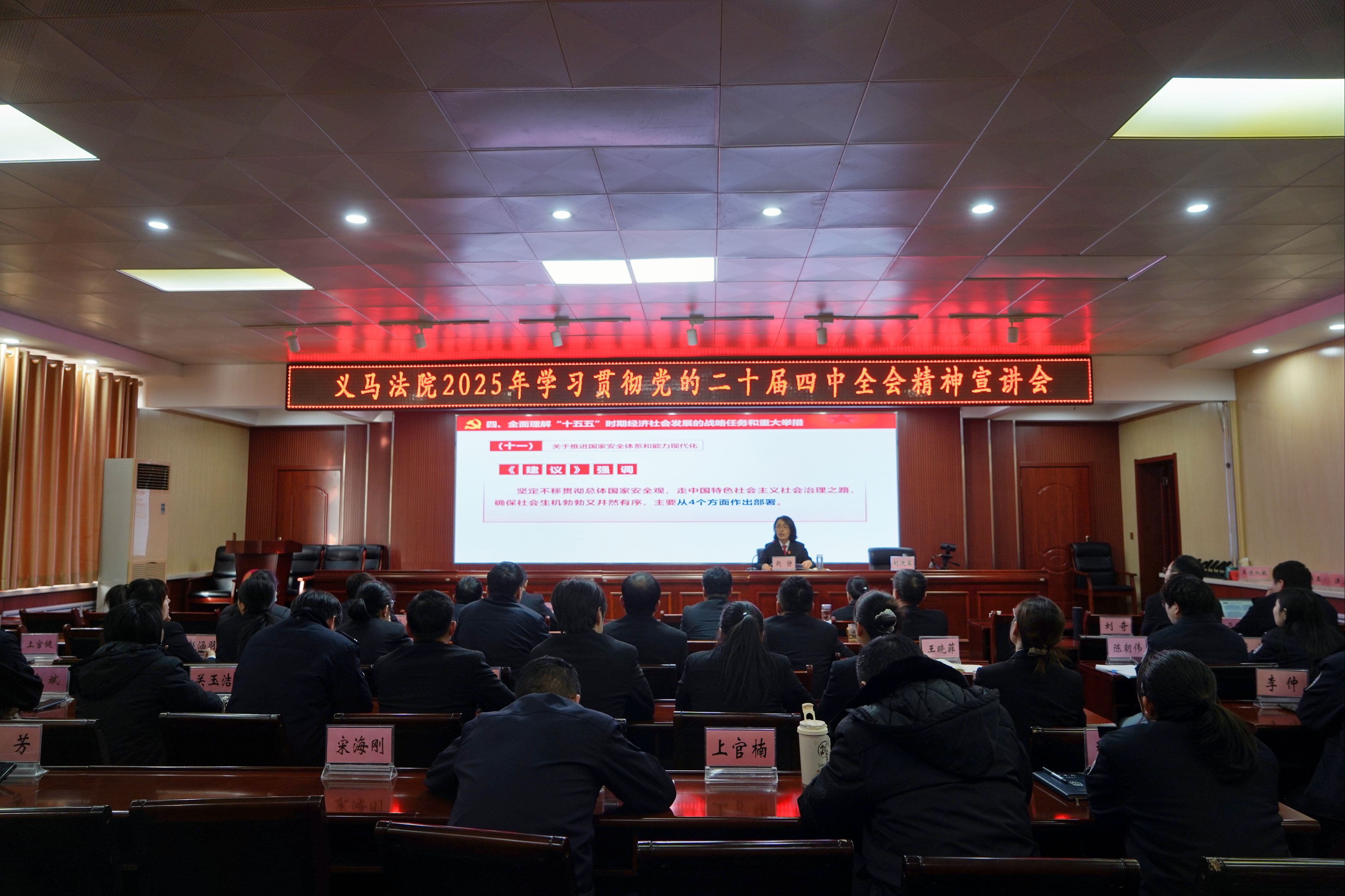 为深入学习领会党的二十届四中全会精神,切实把全院干警的思想和行动统一到党中央决策部署上来,近日,义马法院组织召开专题学习会,党组书记、院长赵静以“学习贯彻党的二十届四中全会精神”为主题,为全院干警作系统宣讲报告。