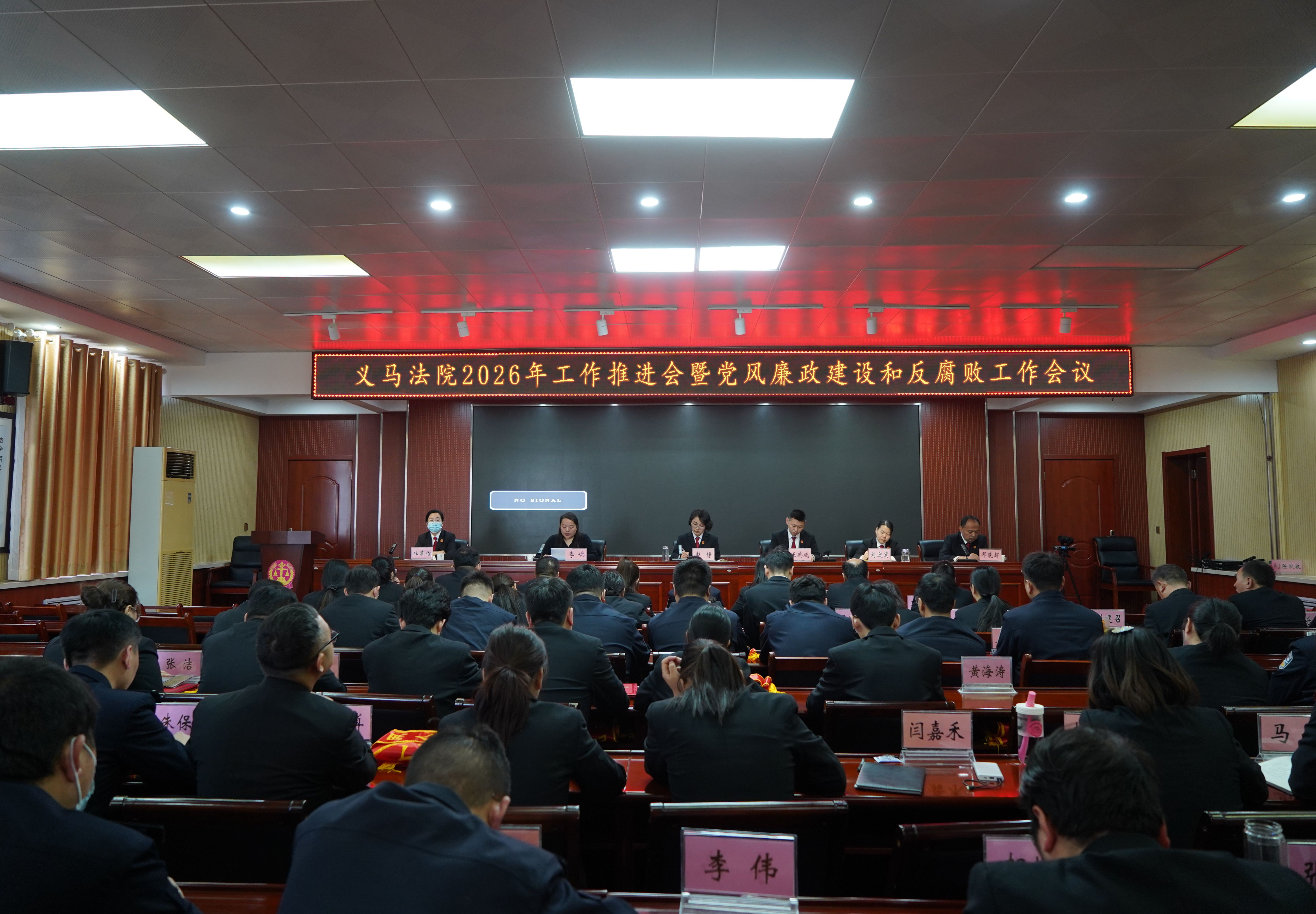 为全面总结2025年工作成效,深入分析当前工作形势,精准部署2026年重点任务,进一步统一思想、凝心聚力、提神鼓劲,4月7日,义马市人民法院召开2026年工作推进会暨党风廉政建设和反腐败工作会议。院党组书记、院长赵静作工作讲话,市纪委监委派驻市委政法委纪检监察组组长李焕应邀出席会议并提出工作要求,院党组副书记、副院长王鹏成主持会议,全体干警参加会议。