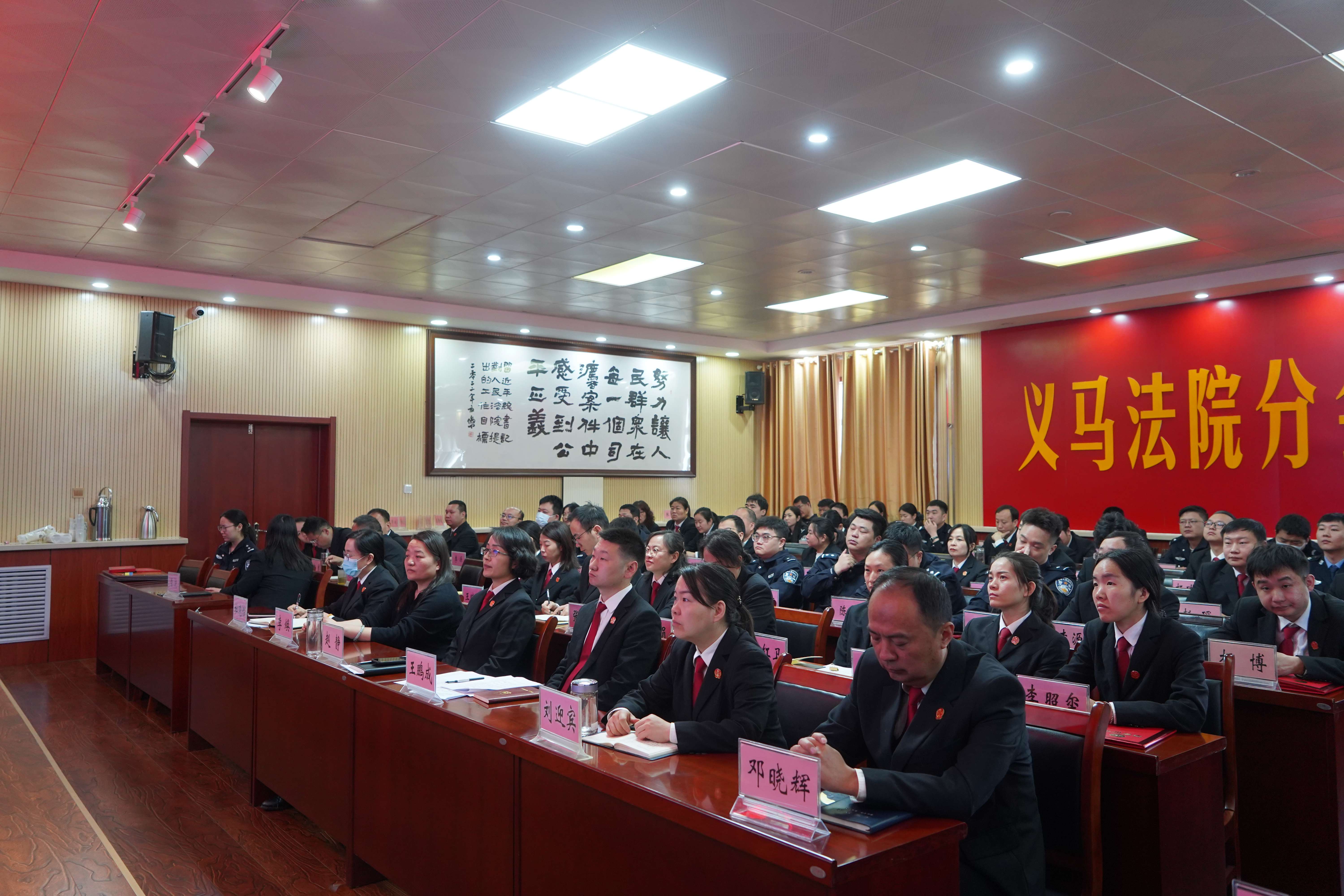 会议要求,一是紧盯主责主业提质增效,确保质效指标100%达标。以“纠纷在院时间”为核心抓手,推动立案、审判管理、司法鉴定、各审判业务团队、执行局全流程协同发力,强化立案甄别分流、全链条办案监管、鉴定质效提升、案件定分止争,将执行管理从“管案件”向“管财产”转变,让公平正义更快更好实现。二是紧盯整体工作平稳运行,坚决防范“四大风险”。树牢底线思维,从严从实防范信访风险,严格落实接访值班、信访终结等制度;防范舆情风险,树立“办案先办舆情”理念,兼顾国法天理人情,做好舆情监测与处置;防范安全风险,强化审判场所安保、网络与数据安全管理;防范廉政风险,深化违规吃喝专项整治,严格落实“三个规定”,强化督责追责,守住廉洁司法底线。三是紧盯队伍素能全面加强,系统提升“五项能力”。持续提升政治能力,深化理论武装,严格落实重大事项请示报告制度;提升基层履职能力,以“枫桥式人民法庭”创建为抓手,推动千秋人民法庭品牌化建设、质效双提升;提升服务大局能力,助力平安建设,持续优化法治化营商环境;提升品牌打造能力,挖掘工作亮点,打造具有义马法院特质的司法品牌;提升理论研究能力,实施“四个一”工程,推动审判实践与司法调研深度融合。