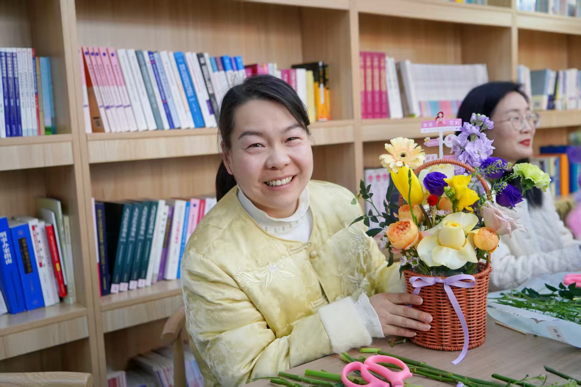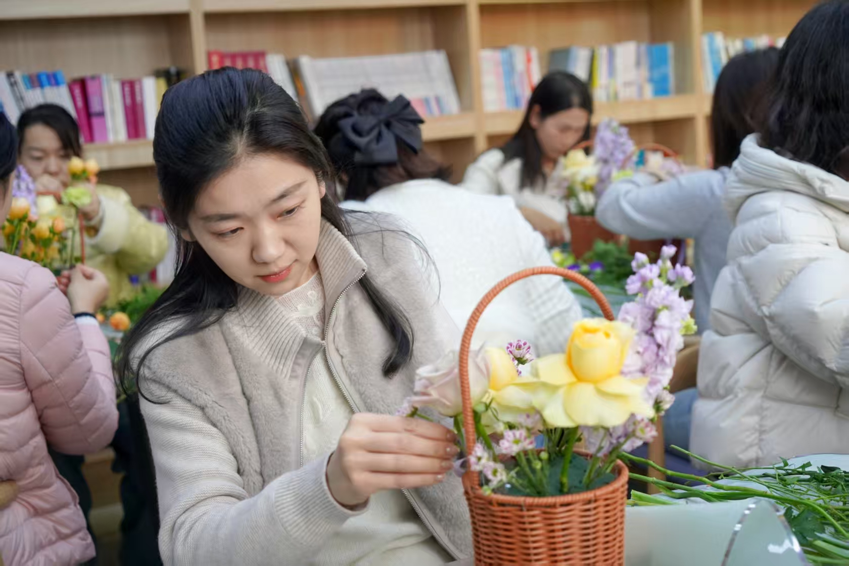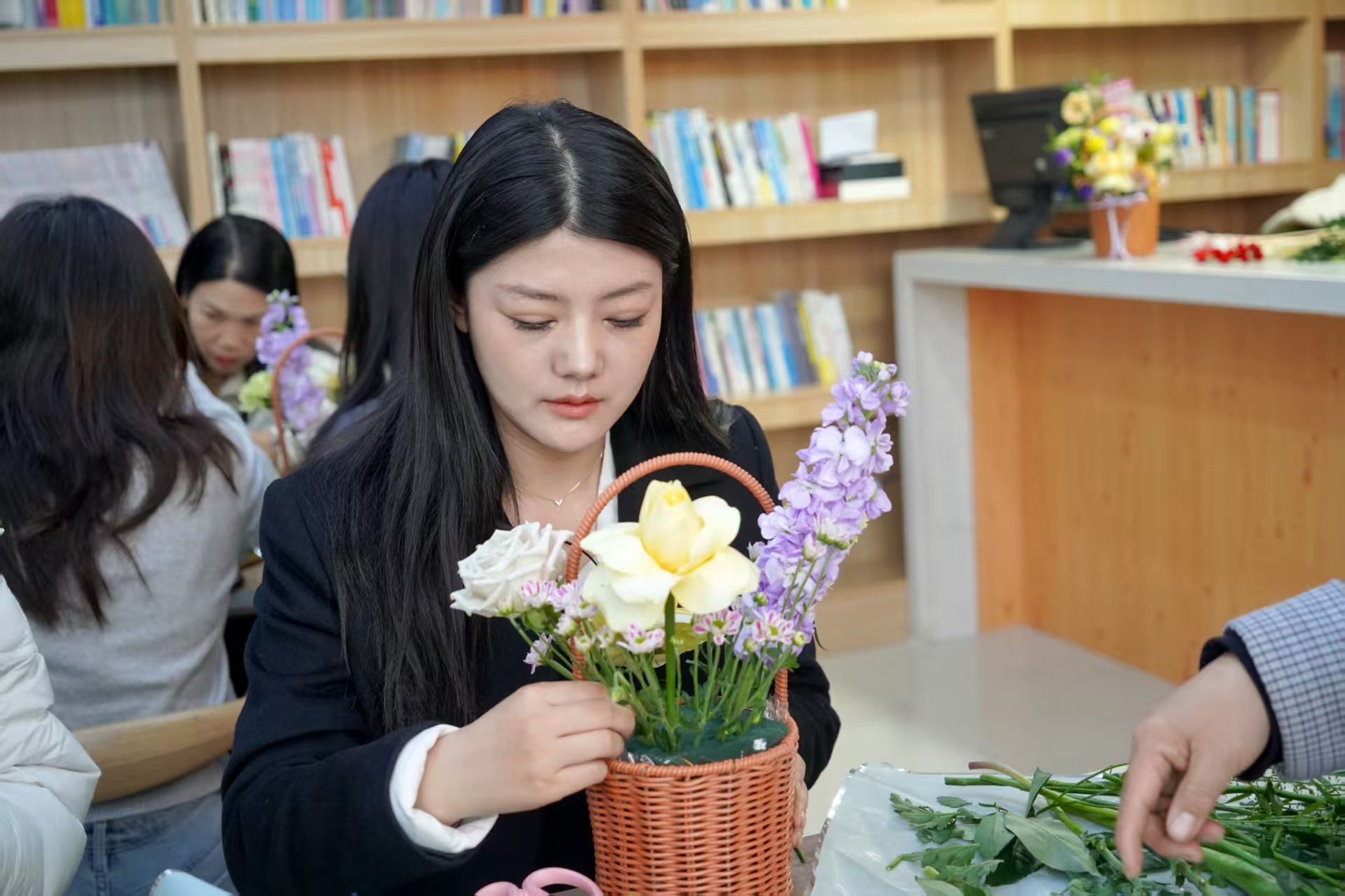 活动以一场雅致的插花疗愈课启幕。花艺老师现场讲解花卉修剪、色彩搭配、造型设计等技巧,从花材选择到构图布局,细致示范、耐心指导。平日里坚守在审判执行、诉讼服务、司法警务、行政保障等岗位的女干警们,暂时放下工作的忙碌,围桌而坐,亲手修剪花枝、搭配色彩、构思造型。指尖轻捻花枝,花香萦绕身旁,一个个错落有致、别具匠心的花艺作品逐渐成型,或清新雅致,或温婉大气,尽显巧思。在与花草的亲密接触中,大家舒缓了身心,释放了压力,感受着生活的美好与诗意。
