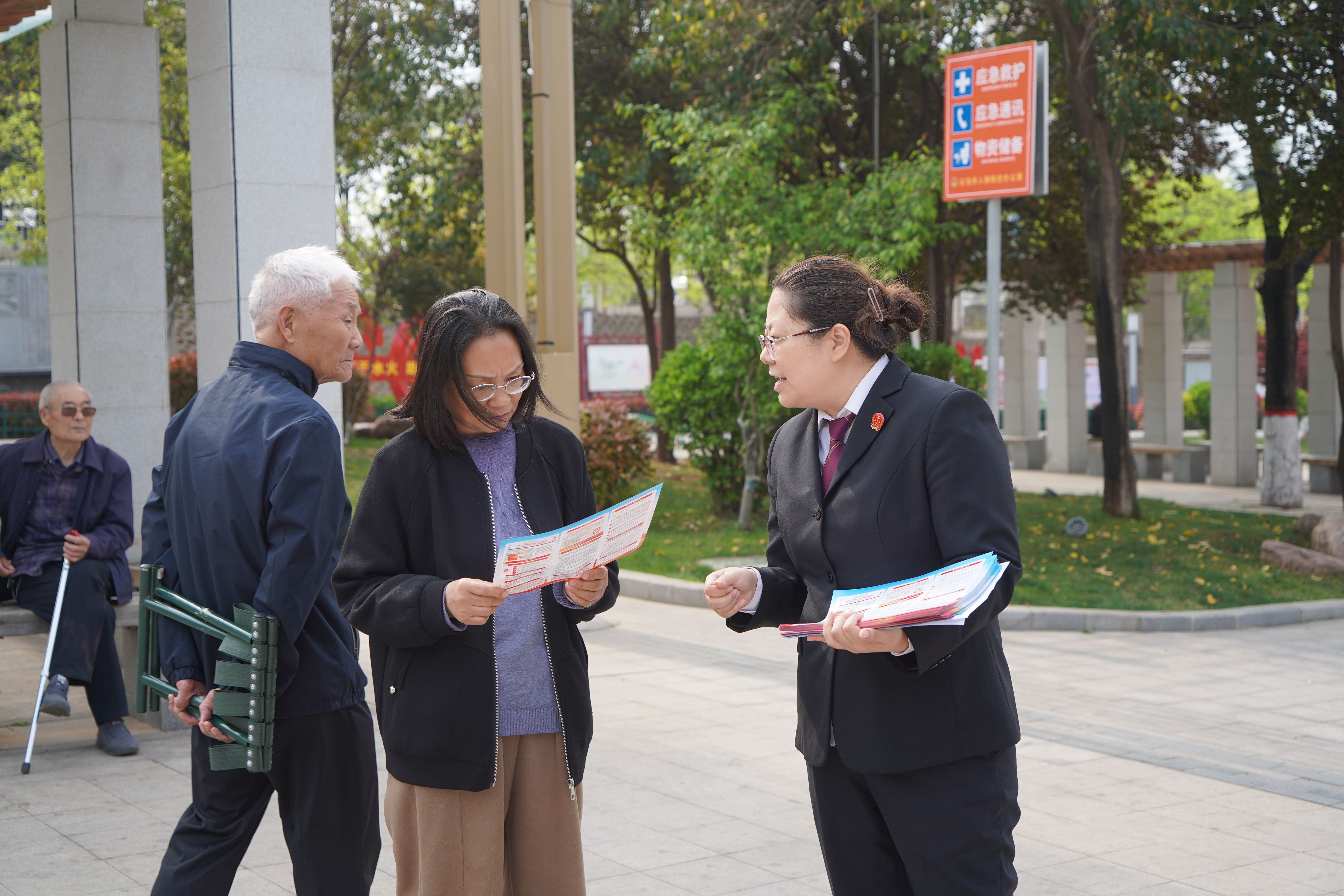 活动当天,法院干警走进公园、社区广场等人员密集区域,通过主题展板、普法手册、宣传彩页等载体,面向市民宣传普及《中华人民共和国国家安全法》等法律法规。干警以通俗语言解读总体国家安全观核心内涵,结合偷拍军事设施、网络传播敏感信息等典型案例以案释法,清晰讲明法律底线与行为准则,让群众直观认识到国家安全与日常生活息息相关。同时还普及了12339国家安全举报渠道,引导群众主动参与维护国家安全,凝聚全民共护家园的社会共识。